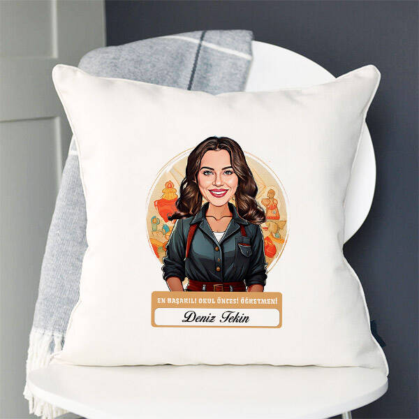 Karikatürlü En İyi Kadın Okul Öncesi Öğretmeni Yastık