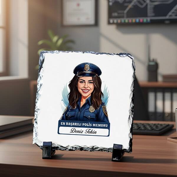 Karikatürlü En İyi Kadın Polis Memuru Dekoratif Taş