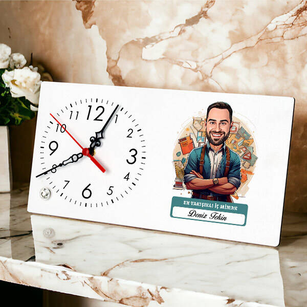Karikatürlü En Yakışıklı İç Mimar Masa Saati