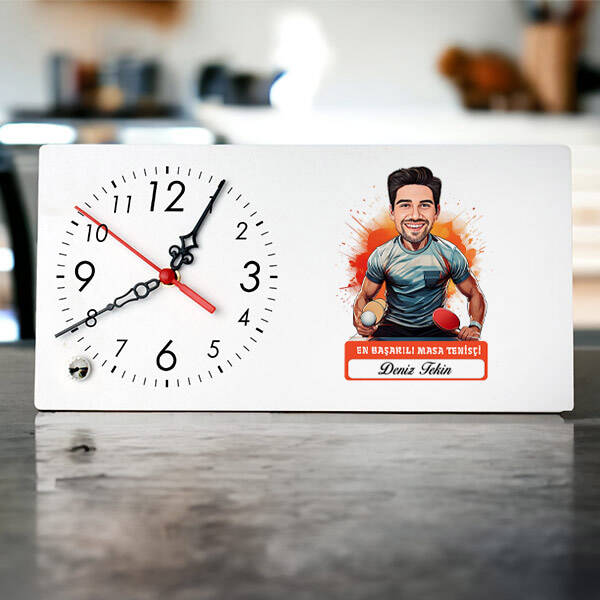 Özelleştirilmiş masa saatleri, sevdiklerinize onları düşündüğünüzü ve değer verdiğinizi gösteren anlamlı hediyelerdir. Raketi kadar gülüşü de hızlı olan masa tenisçilerine özel! Bu saat, zamanla yarışan sporculara layık.