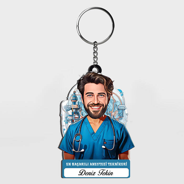 Uyutmak bizim işimiz diyen dostlarınıza, uyanık kalmalarını sağlayacak kadar enerjik bir sürpriz yapın. Erkek anestezi teknikerlerine özel hazırlanan bu karikatürlü tasarım, anahtarlarını her eline aldığında ona ne kadar değerli bir iş yaptığını hatırlatacak. Kişiye özel bu jest, hem ofis masasına renk katacak hem de cebinde taşıdığı en esprili aksesuarı olacak.