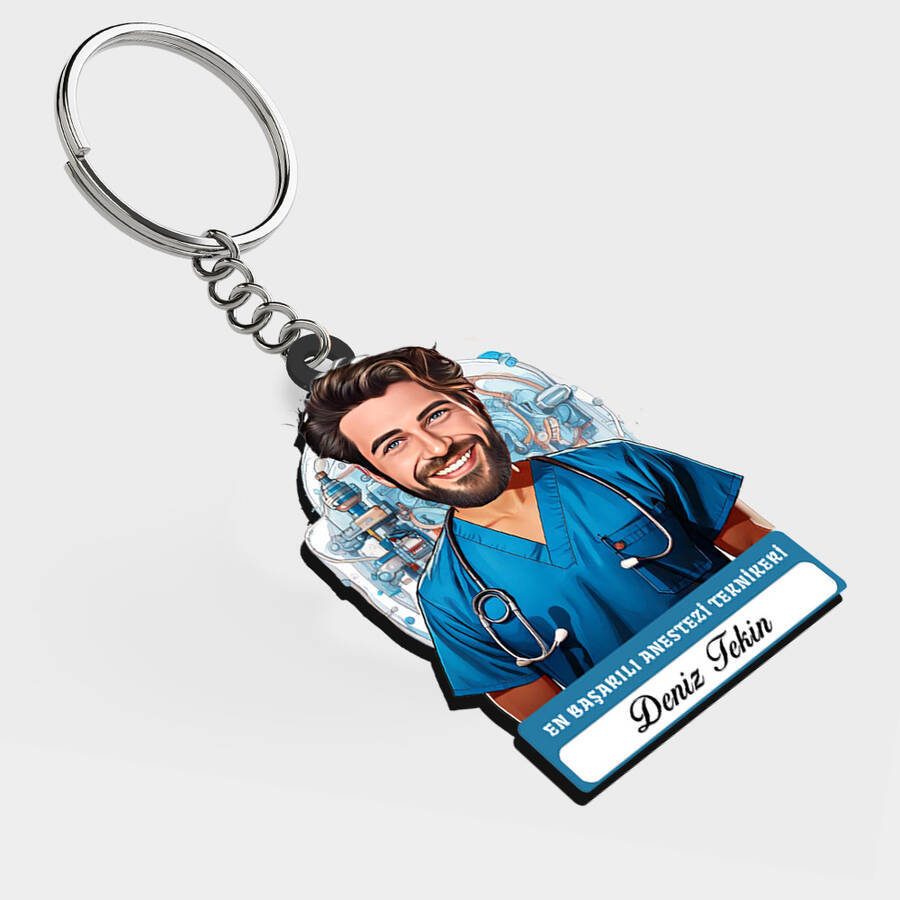 Karikatürlü - Erkek Anestezi Teknikeri İsimli Anahtarlık