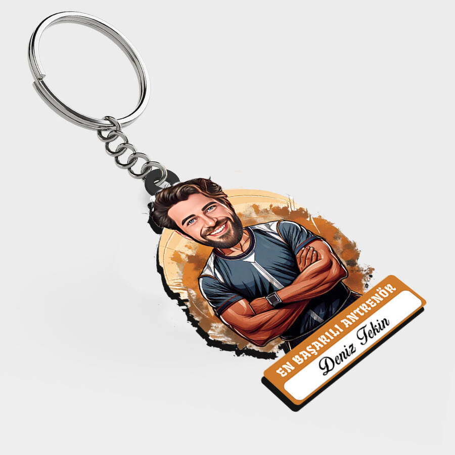 Karikatürlü - Erkek Antrenör İsimli Anahtarlık
