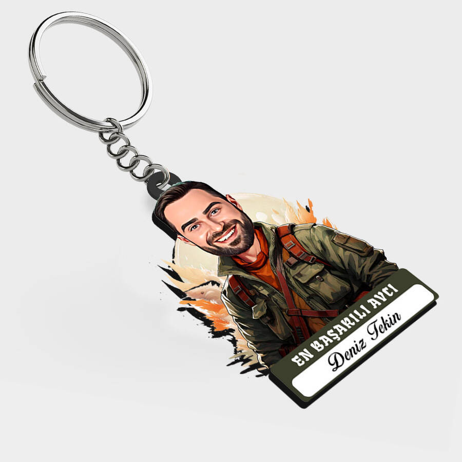 Karikatürlü - Erkek Avcı İsimli Anahtarlık