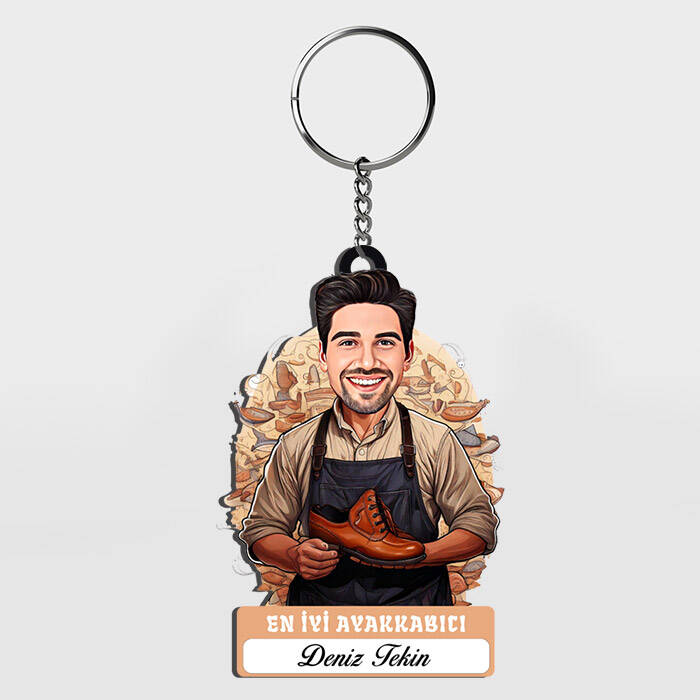 Karikatürlü - Erkek Ayakkabıcı İsimli Anahtarlık