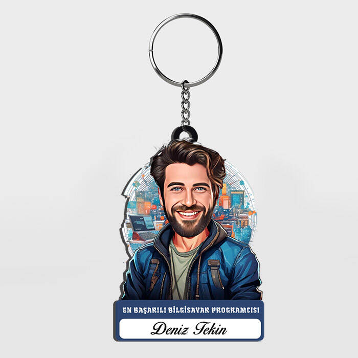 Karikatürlü - Erkek Bilgisayar Programcısı İsimli Anahtarlık