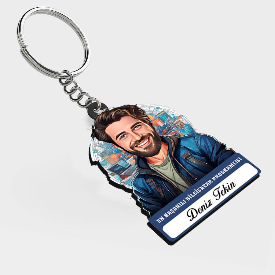 Karikatürlü - Erkek Bilgisayar Programcısı İsimli Anahtarlık