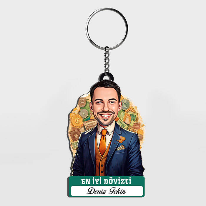 Karikatürlü - Erkek Dövizci İsimli Anahtarlık