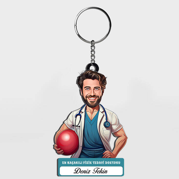 Hastalarının yeniden ayağa kalkmasını sağlayan o azimli doktora, en iyi terapiyi biz uyguluyoruz! Karikatürüyle can bulan bu isimli anahtarlık, mesleki başarısını esprili bir dille selamlayan ve ona her zaman moral verecek olan nadir bir armağan.