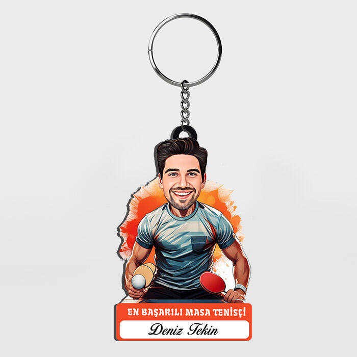 Karikatürlü - Erkek Masa Tenisçisi İsimli Anahtarlık