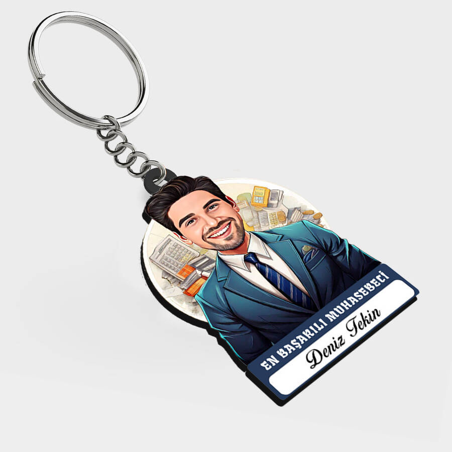 Karikatürlü - Erkek Muhasebeci İsimli Anahtarlık