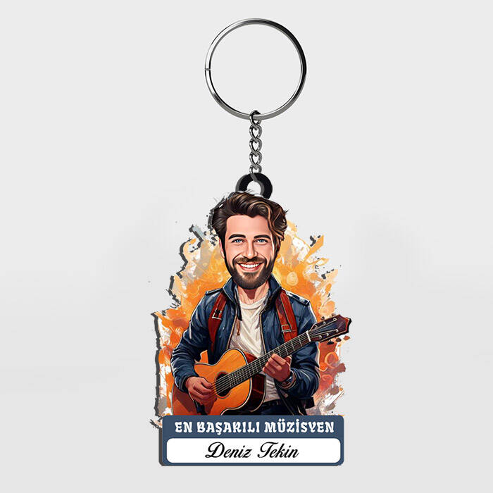 Notaların efendisi, ritmin ustası olan o yetenekli dosta en melodik sürpriz! Enstrümanıyla bütünleşmiş karikatürü, sahne ışıklarının altındaki başarısını günlük hayata taşıyacak. Bu anahtarlıkla, müziğin evrensel dilini kişiye özel bir sevgiyle harmanlayıp ona sunabilirsiniz.