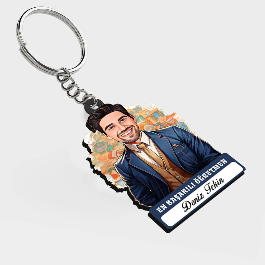 Bilginin ışığıyla yolumuzu aydınlatan, her dersi bir hayat dersine dönüştüren o kıymetli öğretmene, kalıcı bir hatıra! Tahta başında, elinde kalemiyle resmedilen bu karikatürlü tasarım, öğretmenler odasında büyük yankı uyandıracak. İsmine özel hazırlanması sayesinde mesleki onurunu her an yanında taşıyacak olan bu anahtarlık, bir öğrenciden veya meslektaşından gelebilecek en anlamlı jest.