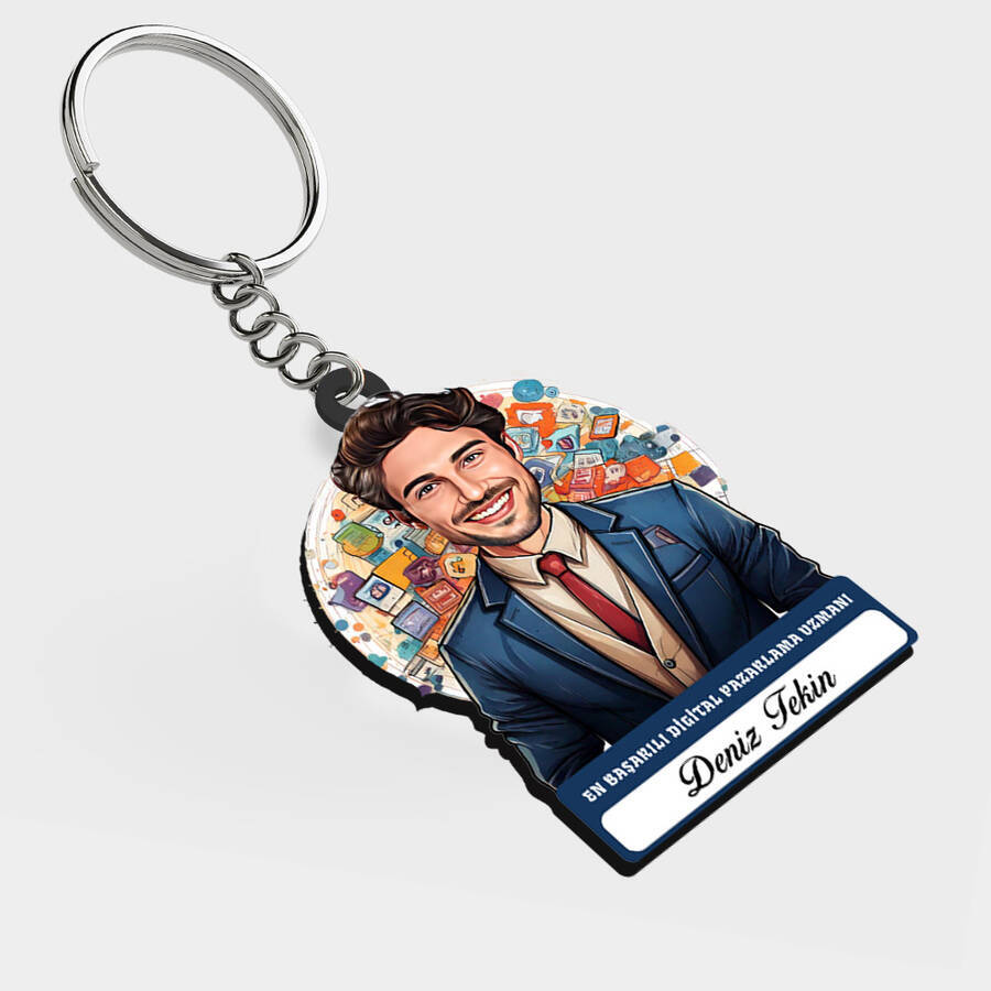 Karikatürlü - Erkek Pazarlama Uzmanı İsimli Anahtarlık