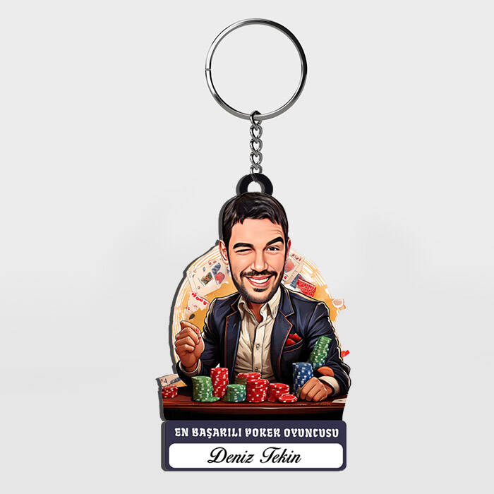 Karikatürlü - Erkek Poker Oyuncusu İsimli Anahtarlık
