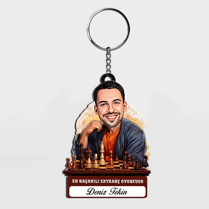 Karikatürlü - Erkek Satranç Oyuncusu İsimli Anahtarlık