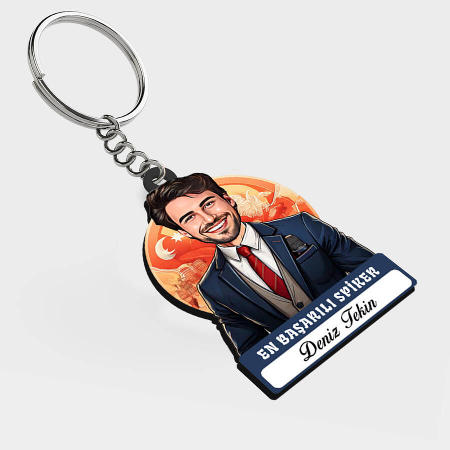 Ekranların o pürüzsüz sesine ve karizmatik duruşuna, bu kez mikrofon yerine kendi karikatürünü verin! Ana haber bülteni tadında bir sürpriz yapmak isteyenler için bu isimli anahtarlık, spiker arkadaşınızın imajını esprili bir boyuta taşıyor. Stüdyo ışıklarından daha parlak bir gülümseme yaratacak bu hediye, onun profesyonel hayatındaki başarısını alkışlamanın en orijinal yolu.