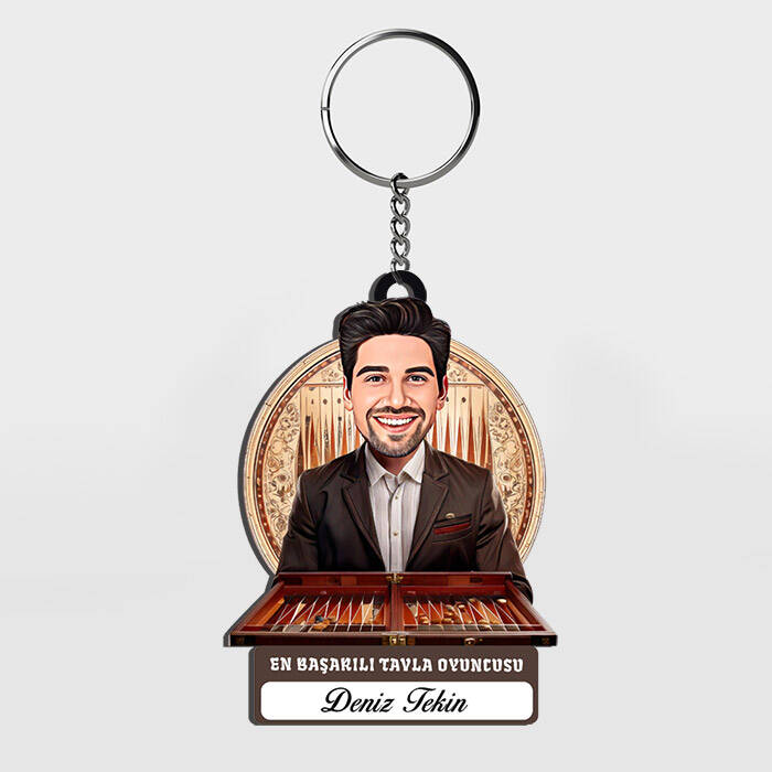 Karikatürlü - Erkek Tavla Oyuncusu İsimli Anahtarlık