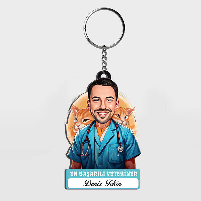 Tüm hayvanların en yakın arkadaşı olan veteriner dostunuza, mesleğine olan tutkusunu yansıtan esprili bir hediye verin. Kendi karikatürünü taşıyan bu isimli anahtarlık, beyaz önlüğünün cebinde taşıyacağı en gurur verici ve komik parça olacak.