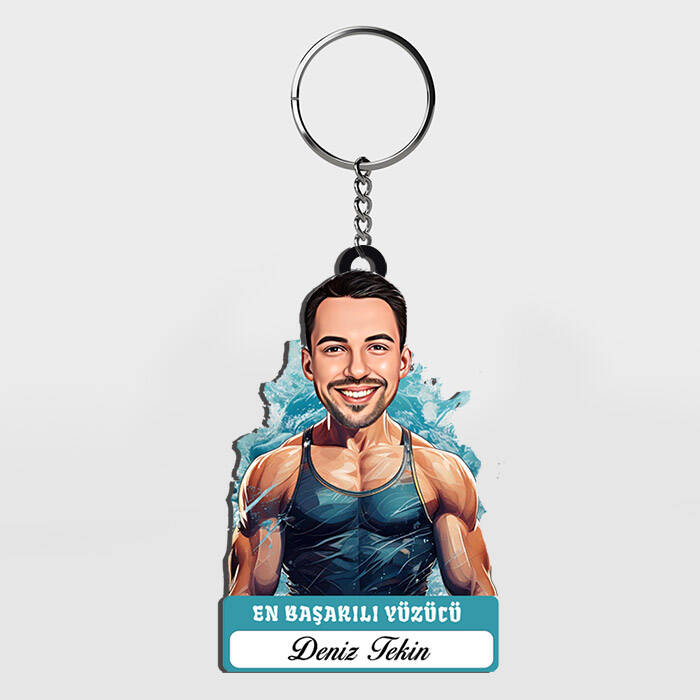 Karikatürlü - Erkek Yüzücü İsimli Anahtarlık