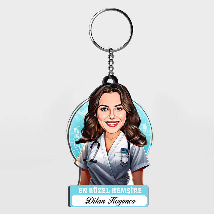 Hastalara şifa ve huzur veren o nazik ellere, en az kendisi kadar güzel ve esprili bir teşekkür hediyesi! Kendi karikatürünü taşıyan bu şık anahtarlık, üniformasının cebinde taşıyacağı en değerli ve en neşeli profesyonel hatıradır.