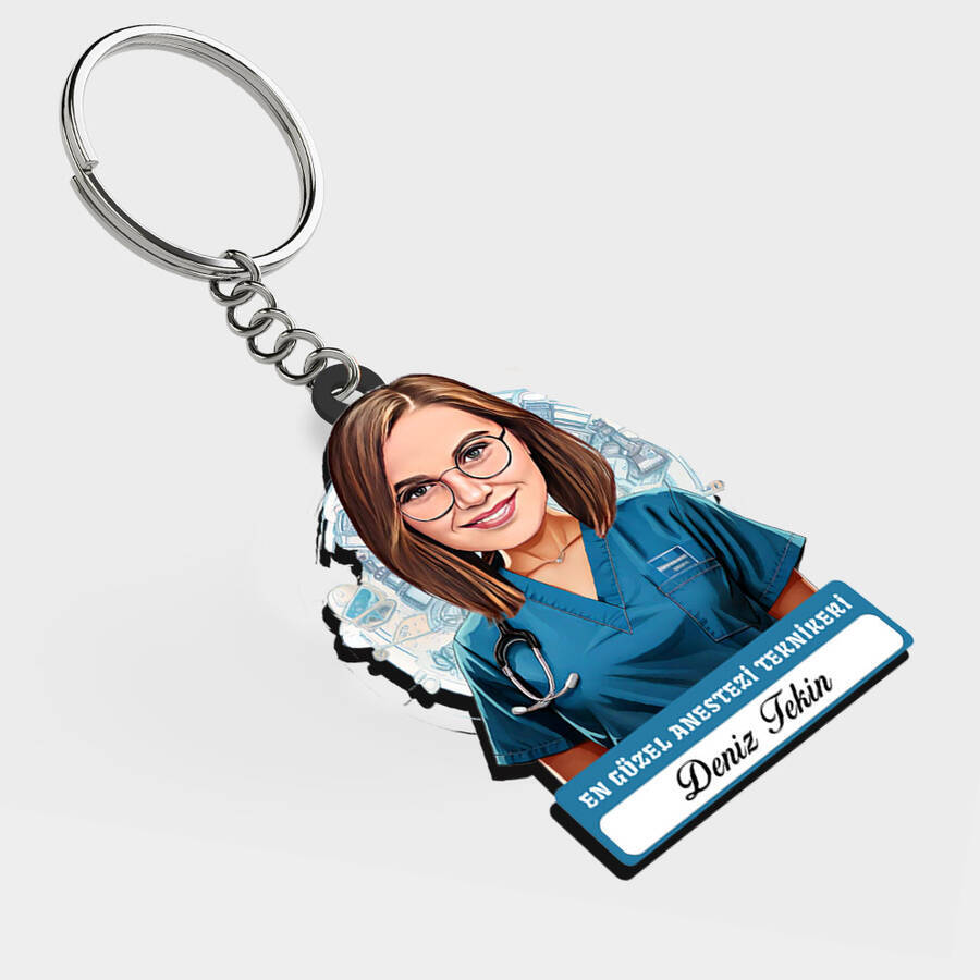 Karikatürlü - Kadın Anestezi Teknikeri İsimli Anahtarlık