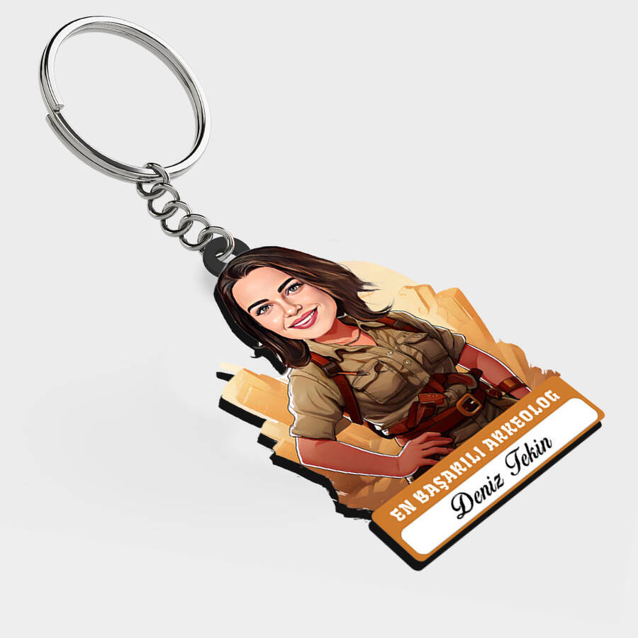 Karikatürlü - Kadın Arkeolog İsimli Anahtarlık