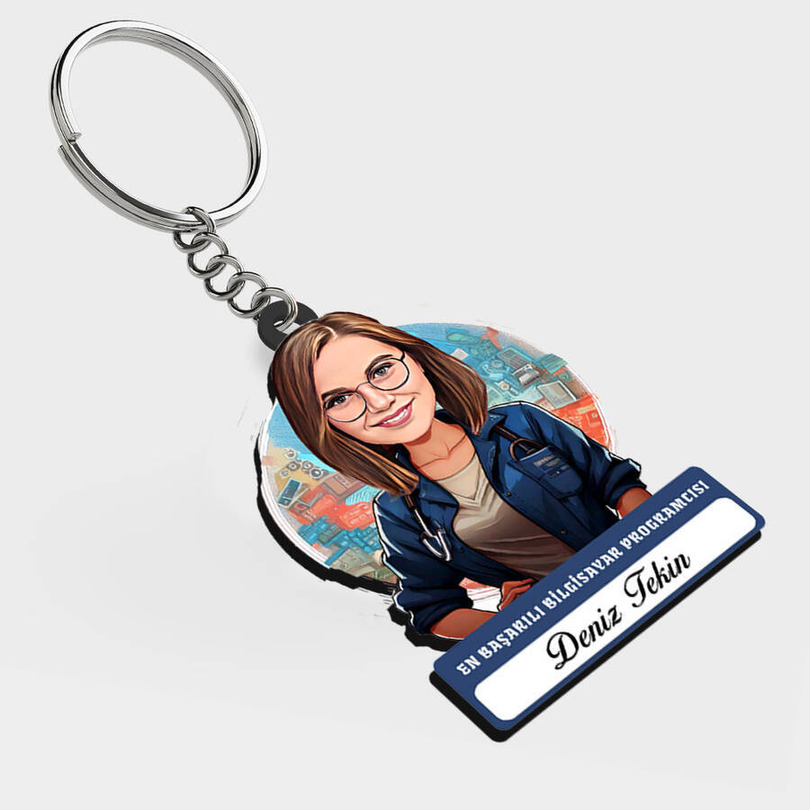 Karikatürlü - Kadın Bilgisayar Programcısı İsimli Anahtarlık