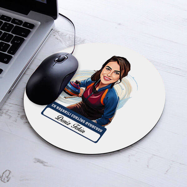 Karikatürlü Kadın Curling Oyuncusu Mousepad