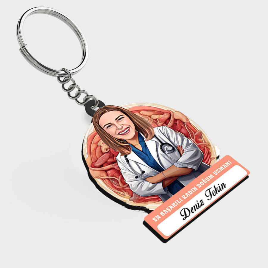 Mucizelere tanıklık eden, her bebeği sevgiyle karşılayan o başarılı kadına, hayat dolu bir sürpriz. Ameliyathanenin yorgunluğunu unutturacak bu karikatürlü anahtarlık, ismine özel detaylarıyla onun profesyonel başarısını selamlıyor. Yeni bir hayatın anahtarını tutan ellere, bu sempatik tasarım çok yakışacak.