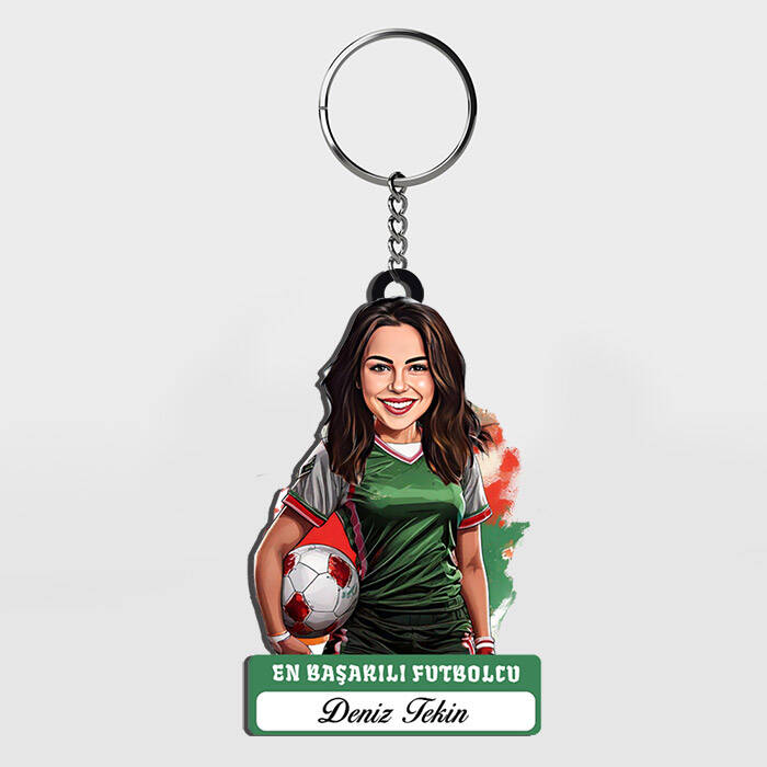 Yeşil sahaların prensesi, gollerin kraliçesi olan kadın futbolculara muhteşem bir asist yaptık! Kendi karikatürünü futbol formasıyla gören sporcu sevdikleriniz, bu hediyeye tek kelimeyle bayılacak. İsmine özel hazırlanan bu anahtarlık, futbol aşkını her daim yanında taşımak isteyen enerjik kadınlar için sahanın en değerli aksesuarı.