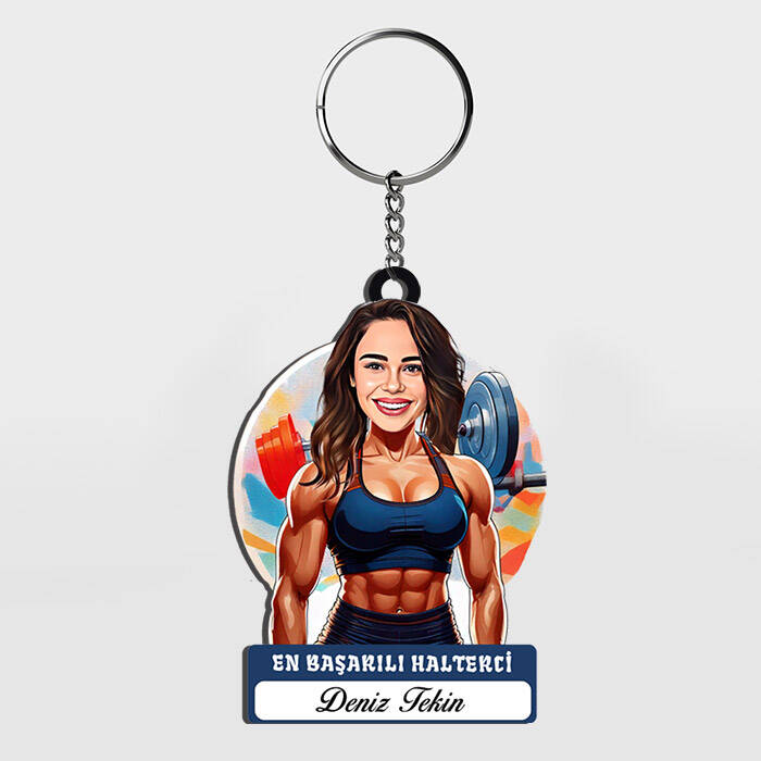 Karikatürlü - Kadın Halterci İsimli Anahtarlık