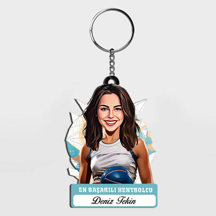 Karikatürlü - Kadın Hentbolcu İsimli Anahtarlık
