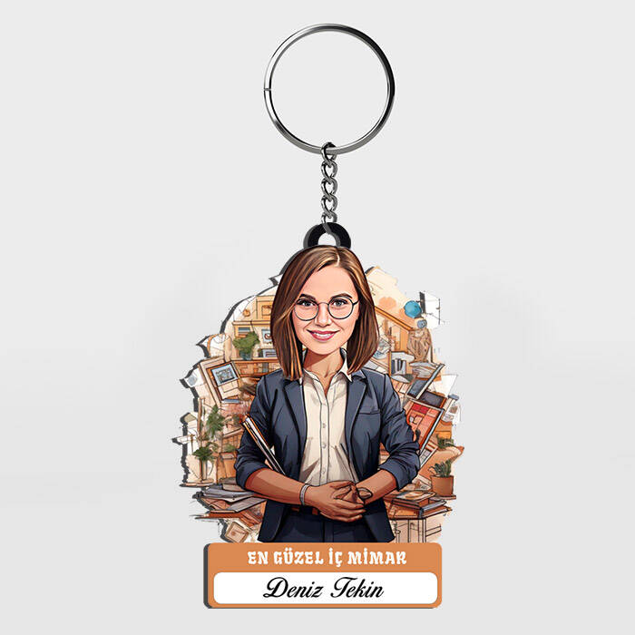 Karikatürlü - Kadın İç Mimar İsimli Anahtarlık