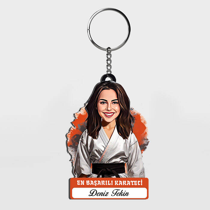 Zerafetin ve savunma sanatının buluştuğu o başarılı karateci kadına, dojo dışındaki en güzel hediyeyi verin. Karikatürlü tasarımıyla bu anahtarlık, onun kararlı duruşunu isim baskısıyla taçlandırarak ömür boyu unutulmayacak bir hatıra sunuyor.