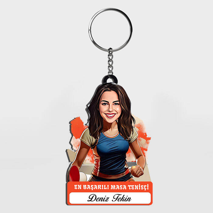 Karikatürlü - Kadın Masa Tenisçisi İsimli Anahtarlık