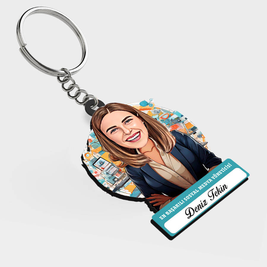 Karikatürlü - Kadın Medya Yöneticisi İsimli Anahtarlık