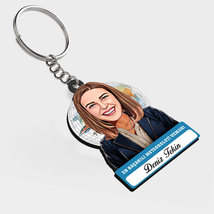 Karikatürlü - Kadın Meteoroloji Uzmanı İsimli Anahtarlık