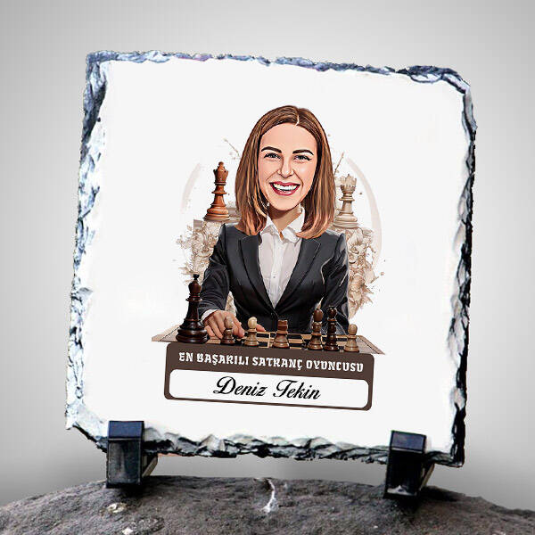 Karikatürlü Kadın Satranç Oyuncusu Dekoratif Taş