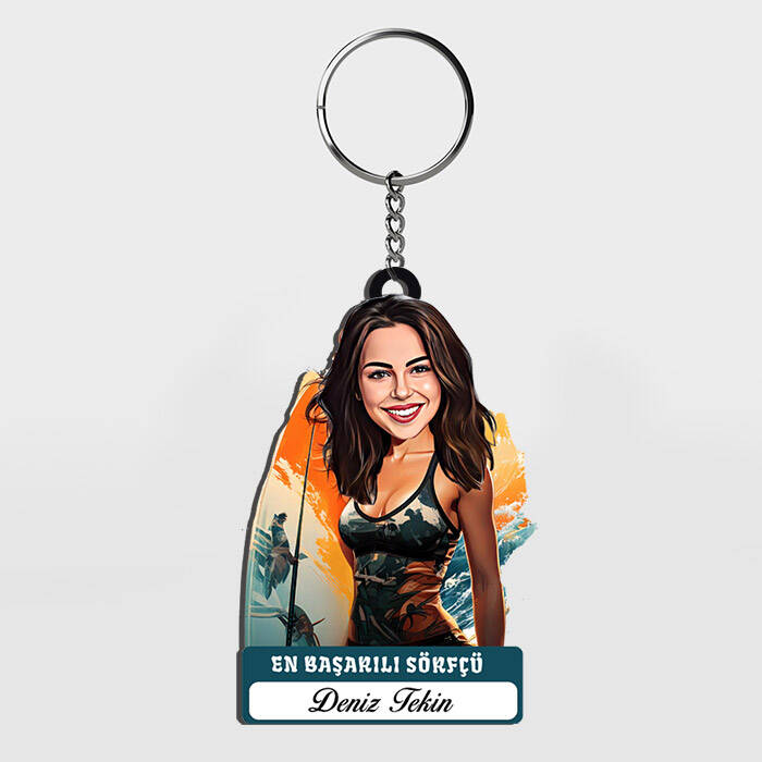 Karikatürlü - Kadın Sörfçü İsimli Anahtarlık
