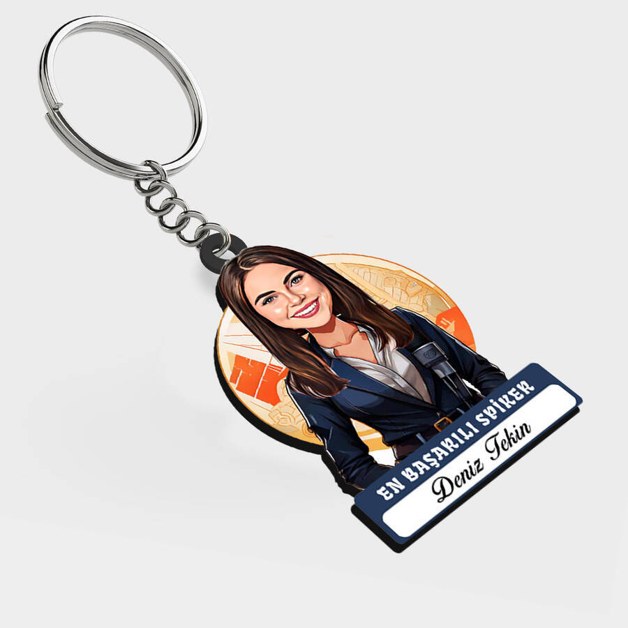 Haber bültenlerinin yıldızı olan o başarılı kadına, hayatının manşeti olacak bir sürpriz. Ekran önündeki zarafetini karikatürün komikliğiyle birleştiren bu isimli anahtarlık, yayın stresini anında yok edecek. İsmine özel hazırlanması, ona kendini bir kez daha star gibi hissettirecek.