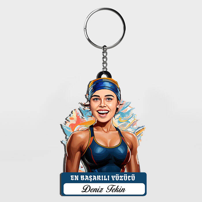 Karikatürlü - Kadın Yüzücü İsimli Anahtarlık