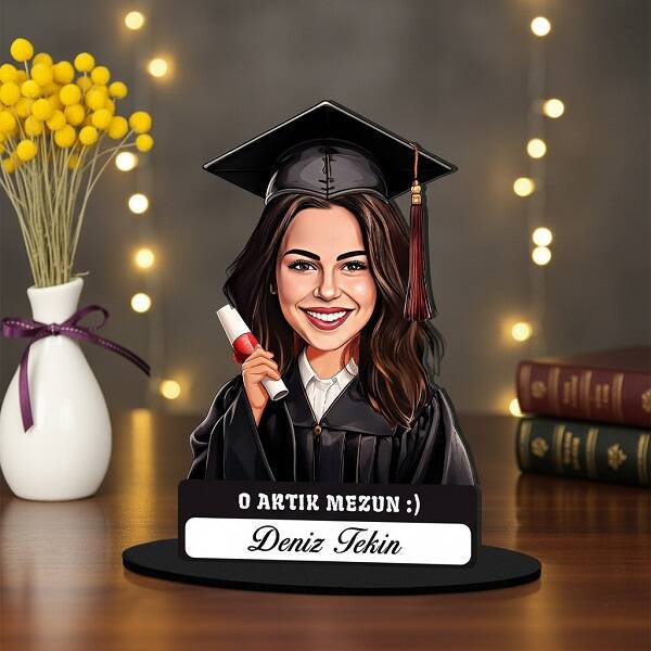Mezuniyet, bir öğrenci için son derece önemlidir ve bu özel biblo, mezun öğrencilerin bu özel anını unutulmaz kılmak adına eşsiz bir hatıra niteliğindedir. Hediyemen'de müşteri memnuniyetini ön planda tutarak, mezuniyet hediyelerinin en zarif ve anlamlı seçeneklerini bulabilirsiniz. Grafiker ekibimiz tarafından gönderdiğiniz yüz fotoğrafınızın karikatürize edilmesiyle hazırlanan bu biblo, hem kişisel hem de yaratıcı bir hediye deneyimi sunar.