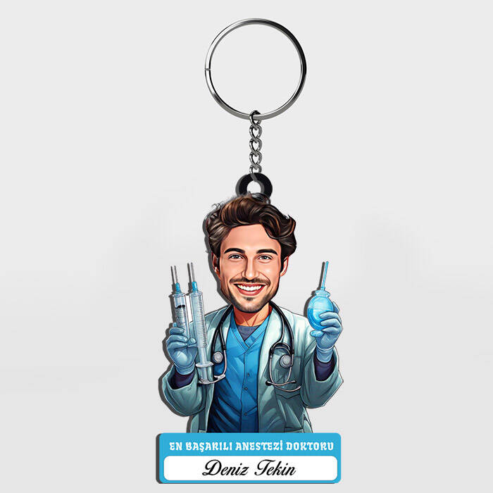 Karizmasıyla hastaları sakinleştiren, profesyonelliğiyle güven veren o "yakışıklı" doktora özel bir imza! Anestezi dünyasının o teknik havasını, bu karizmatik karikatürle birleştirmek harika bir fikir değil mi? İsimli bu anahtarlık, onun stilini ve mesleki başarısını her zaman yanında taşıyacağı bir madalyaya dönüştürüyor.
