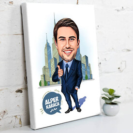Özel Bilgisayar efektleri kullanılarak size özel bir karikatür çalışması yapılıyor ve görmekte olduğunuz bu yüksek gökdelenler önünde duran zengin erkek görünümünde karikatürünüz hazırlanıyor. Siz de hem dikkat çekici, hem de yüzlerde tebessüm oluşturacak esprili bir doğum günü hedisiyesi arıyorsanız, bilgisayar efektli karikatür çalışmasının üzerinde yer alacağı bu karikatürlü canvas tabloyu tercih edebilirsiniz. Kişiye özel olarak hazırlanacak olan zengin iş adamı kanvas tablo, biricik erkek sevdiğinize tam bir kahkaha şenliği yaşatıyor olacak.