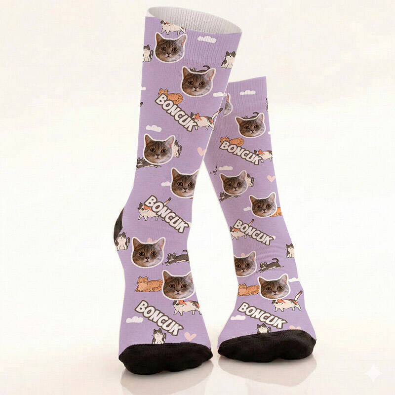Kedinizin İsmine ve Fotosuna Özel Çorap