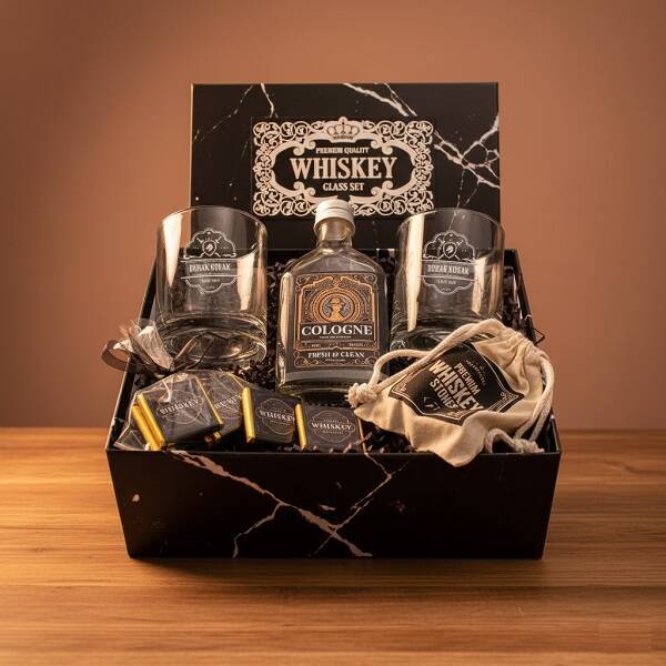 Kişiselleştirilebilir İkili Viski Bardağı ve Kolonya Hediye Kutusu