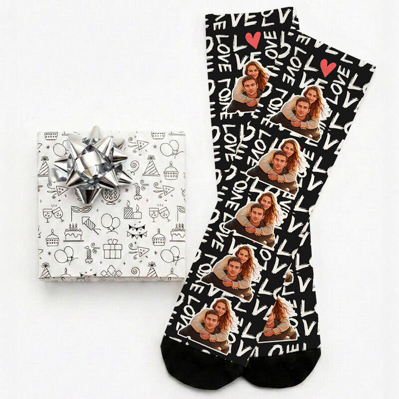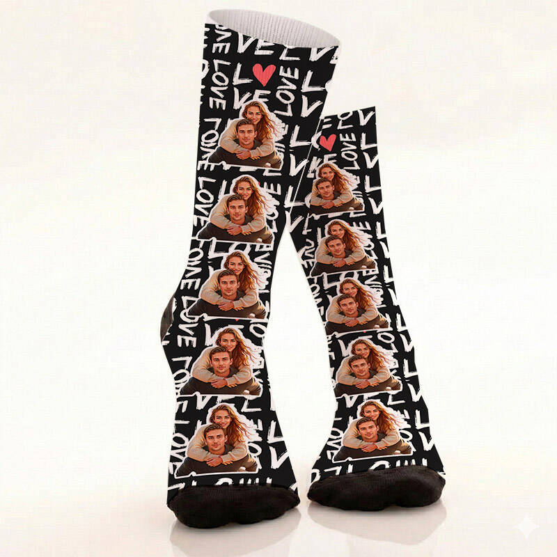 Kişiye Özel 5 Fotoğraflı Love Yazılı Çorap