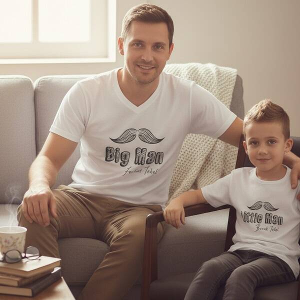 Bu yazın en gözde babası ve tabi ki de en az babası kadar yakışıklı oğlu, ancak böylesine dikkat çekici bir tişörtle ödüllendirilebilirdi. Oğlunuzla mükemmel derecede ilgilenen sevgili eşinize ve babasıyla harika bir uyumu olan biricik Oğlunuza en güzel hediye, hiç şüphesiz ki Kişiye özel Babası ve Oğlu Tişörtü olacaktır. Üzerinde erkekleri simgeleyen bıyık figürleri ve eşiniz için "Big Man" & oğlunuz için de "Little Man" yazıları yer alan isime özel Babası ve Oğlu Tişörtü artık Hediyemen.com'da.