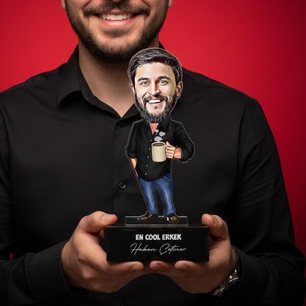 En sevdiğinizi hediyenizle güldürmek istiyorsanız cool erkek karikatürlü bu biblo, işinize pek yarar gibi duruyor. Sizler de sevdiklerinizin gülümseyen 32 dişini de aynı zamanda görmeyi istiyorsanız, kendileri için hediye tercihlerinizi bu komik karikatürlü biblolardan yana yapabilirsiniz. Karikatürlü biblo, doğum günü hediyesi olarak sevdikleriniz için en doğru karar olacak. İster kendinizin, isterseniz de sevdiğinizin yüz fotoğrafını bizlere göndererek hazırlatabileceğiniz cool erkek tasarımlı karikatür çalışmasıyla yılın en komik hediyesi olan bu kişiye özel karikatür efektli bir biblo hazırlatabilirsiniz.